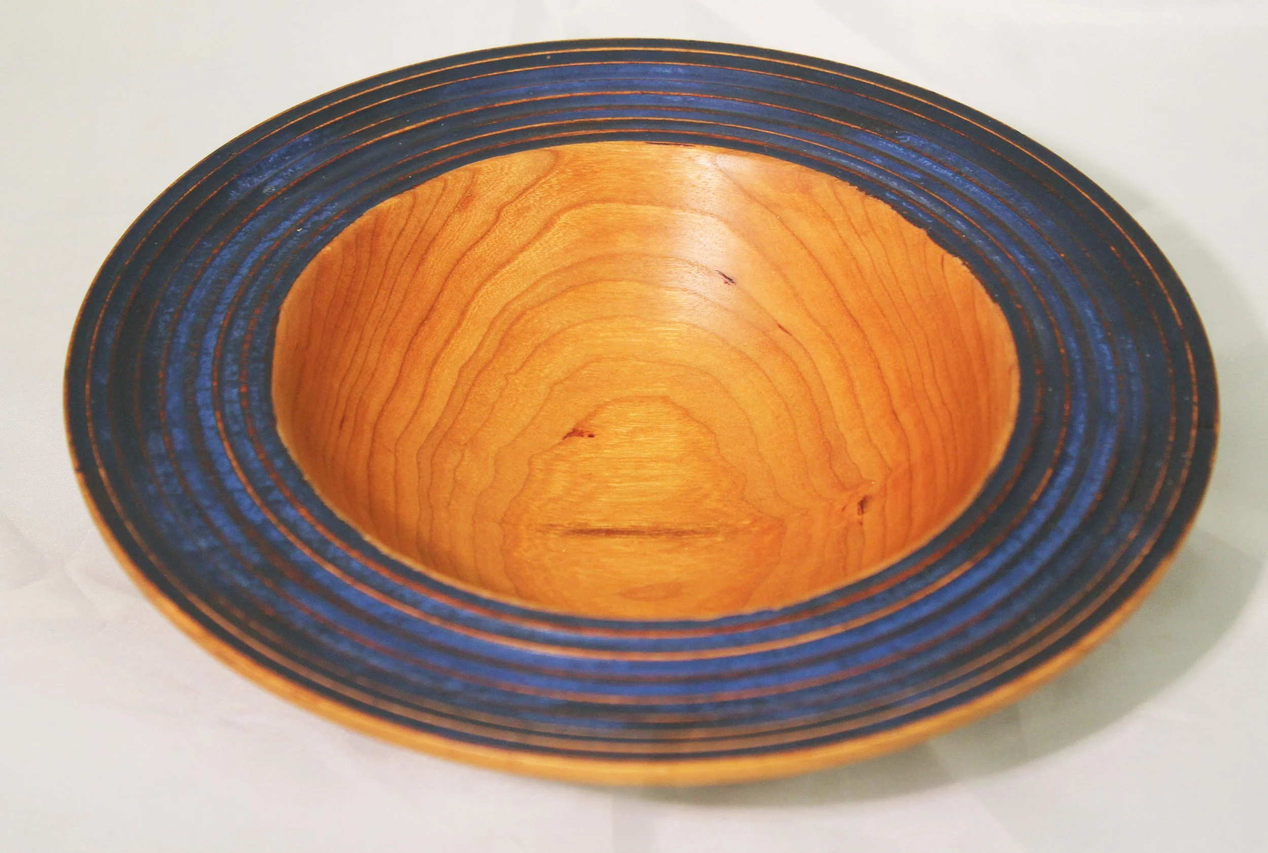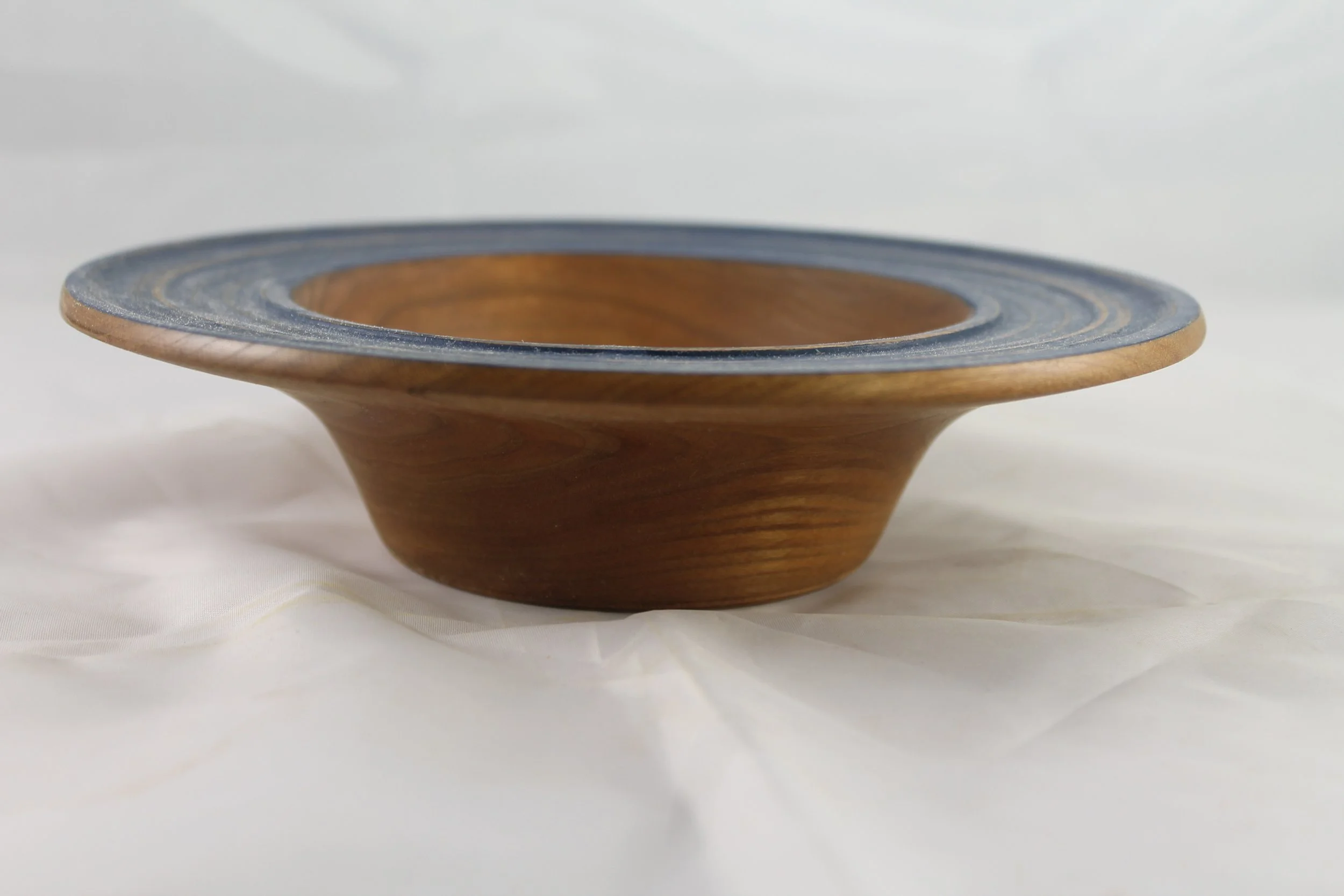 6264 - Cherry Shallow Bowl with blue milk paint rim
